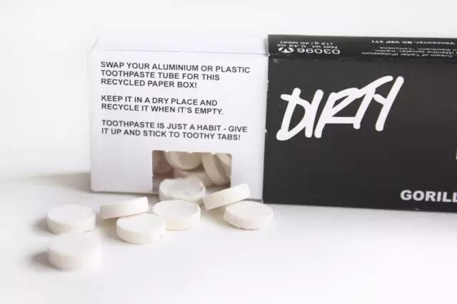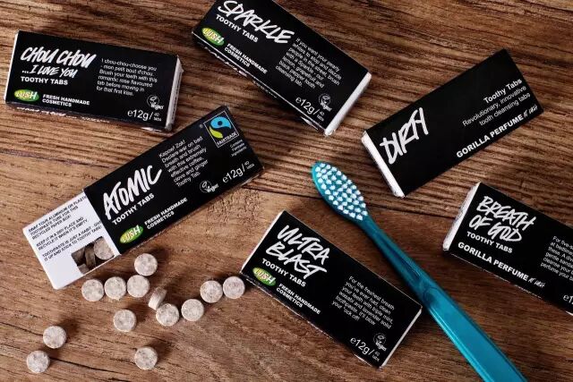 想要图个新鲜的,可以试试Lush家出的圆圆扁扁的牙膏粒,像糖果一样装在黑色小盒子里,一盒大概40粒吧,有好几种口味可以选。使用方法很简单,放在嘴里嚼碎了,然后用牙刷刷就可以。▼