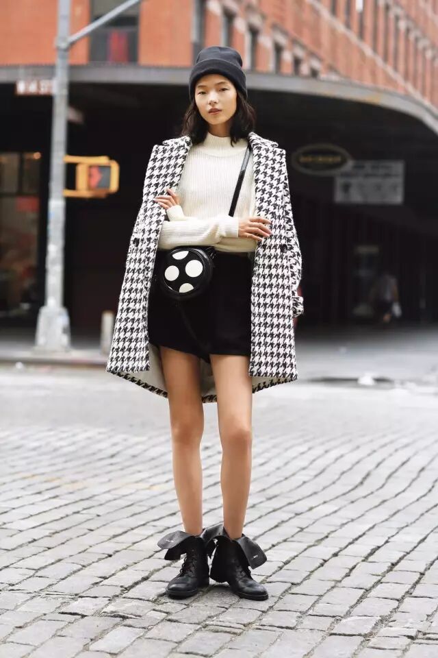 还有格纹搭波点,像超模雎晓雯用千鸟格大衣搭黑白波点小包,也蛮有趣的。▼