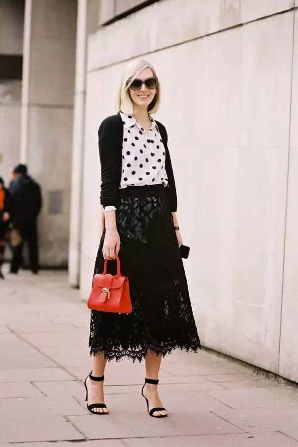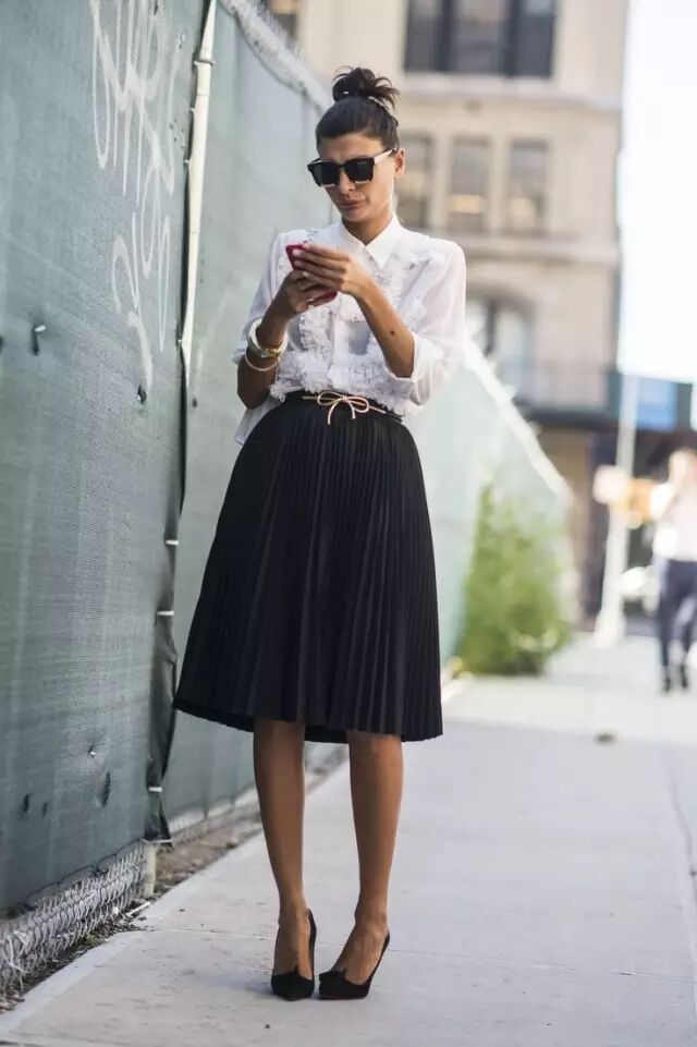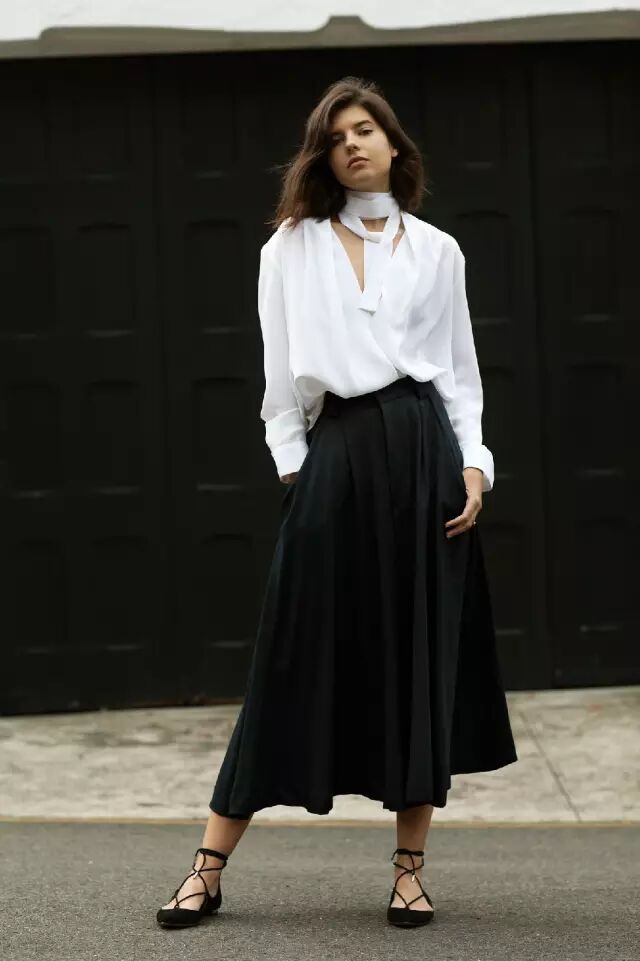 天凉一点,可以选择白衬衫搭黑色长裙,优雅又时髦。▼