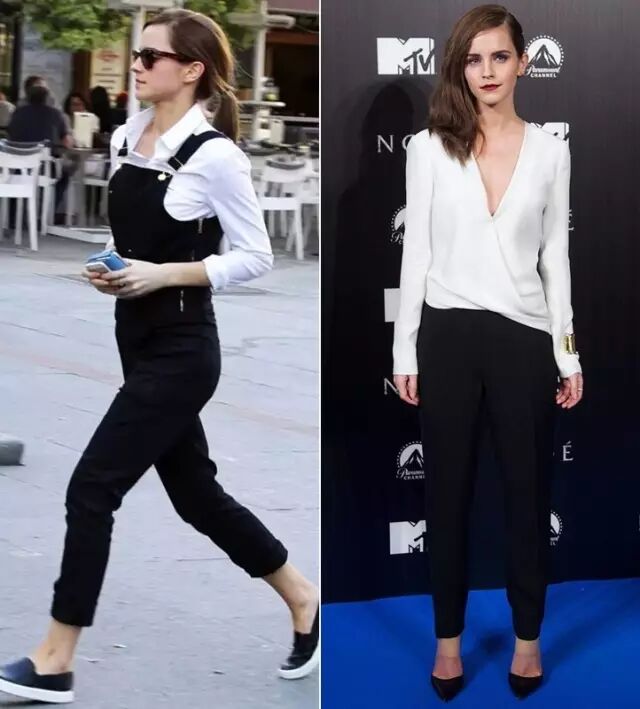 可以很轻松休闲,也可以很个性帅气。很多明星无论是私服还是出席活动走红毯,都常常会想到黑白配这个造型组合。比如屈臣氏小姐。▼
