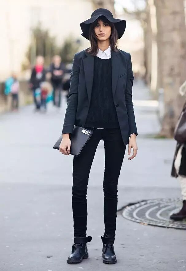 全黑中加一点白的穿法,不少时装精都驾驭得很熟练了。▼