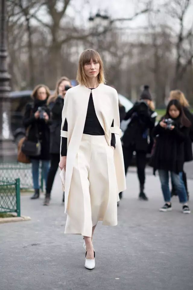 大家都穿黑白配,想要脱颖而出,最聪明的办法是在单品的款式上下功夫。选择更有设计感的黑色或白色单品,会比基础款单品更时髦。