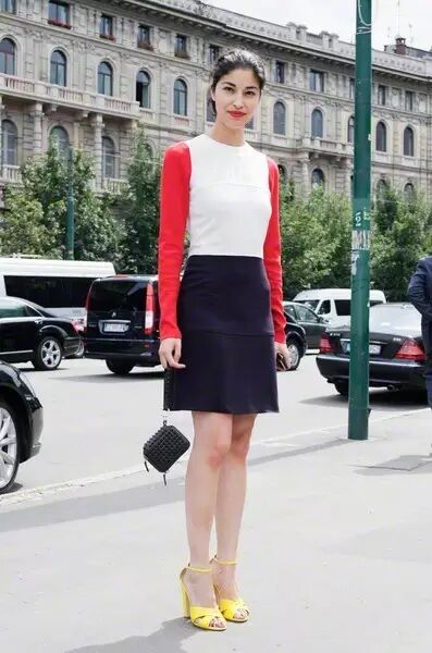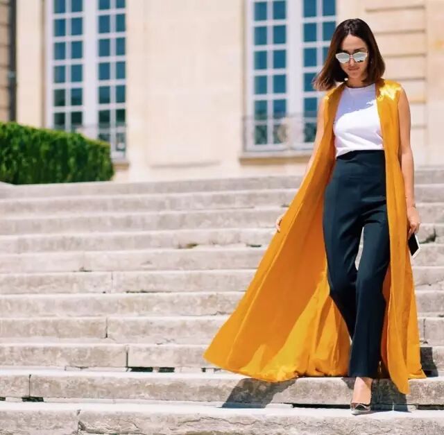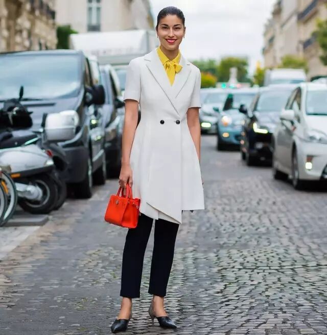 不过,这个组合有一个要诀就是:鲜艳的颜色,有一个就够了。太多反而没有惊艳的效果。比如时尚编辑Caroline Issa 这一身,同时加入了明黄色和红色,有点多。▼