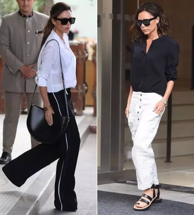 不过黑白大法虽然好,却很容易泯然于众人,甚至沦为沉闷乏味。就说贝嫂吧,同样是黑白配,左边是时尚icon,右边就比较路人了。▼