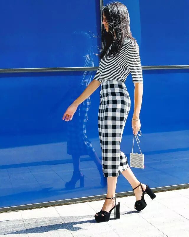 说到黑白配,大家想到的总是大面积的黑色 白色。其实,在黑白配中,运用几何单品,比如黑白条纹、格纹、波点、拼色等等,时髦指数顿时飙升。不仅可以走简约风,其实今年流行的繁复风,也可以用黑白几何单品混搭出来。