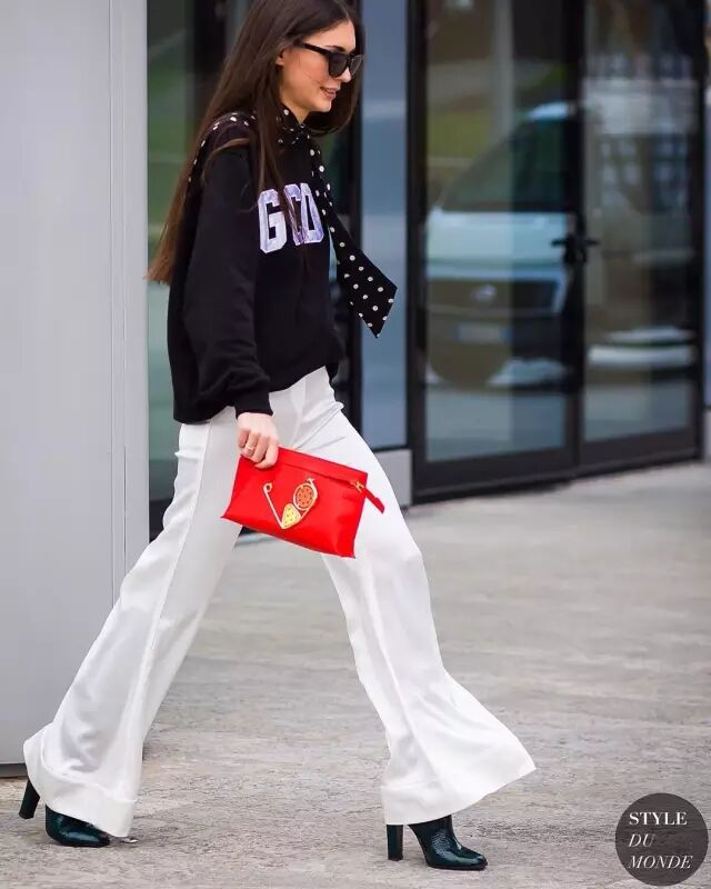 不管是怎么样的黑白配,加入小面积鲜艳的颜色都会很出彩。其中最经典、好搭的当然就是红色。