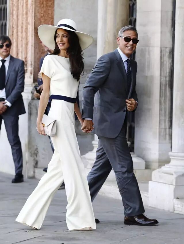 Amal这一身也很经典,帽子和衣服完美搭配,妥妥白富美。▼