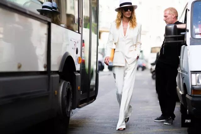 只要一顶黑白配的巴拿马帽,配一身白西装白裙子就看起来非常有气场了,感觉马上就可以迎娶高富帅。▼