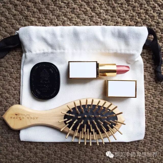 你们都知道我很喜欢梳头,随身带一把梳子随时梳头的感觉简直不要太好。之前随身带的是这支ACCA KAPPA,发过好多次了。就因为这样被损友盯上,抢走了~它上面那个黑盒子是Diptyque的香膏,盒子非常貌美,也非常重。坐飞机没有托运行李又担心香水不好拿我就会带上它~▼