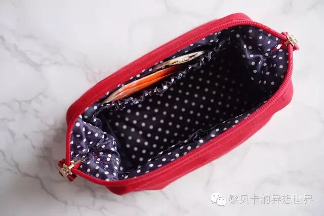里面两边都有小分隔,方便放一些细小的东西。配色是经典的红黑配,里衬还是波点,实力少女心~▼