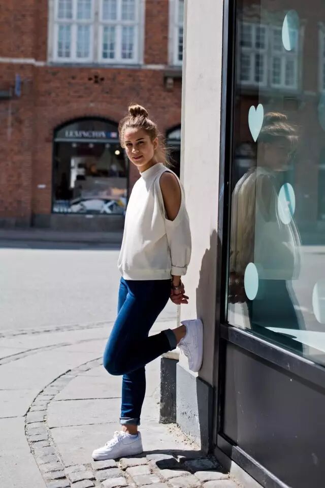 去年我们写过的妈妈年轻时很爱穿的白色高领衫,今年依然很流行。▼