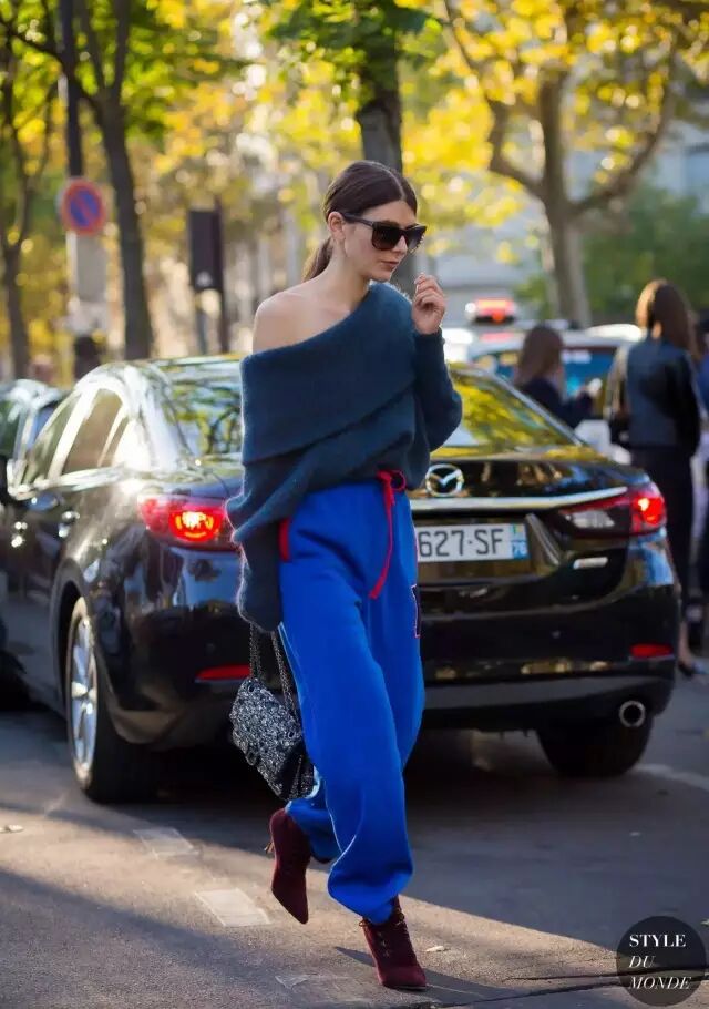 没有露肩针织衫不要紧,找一件领子大一点的,往下拽一拽,小性感说有就有了。冷的话还可以立马切换到正常的保暖模式。▼
