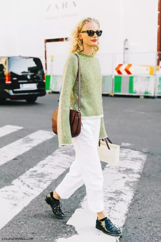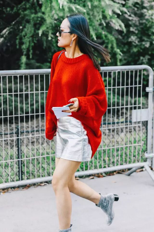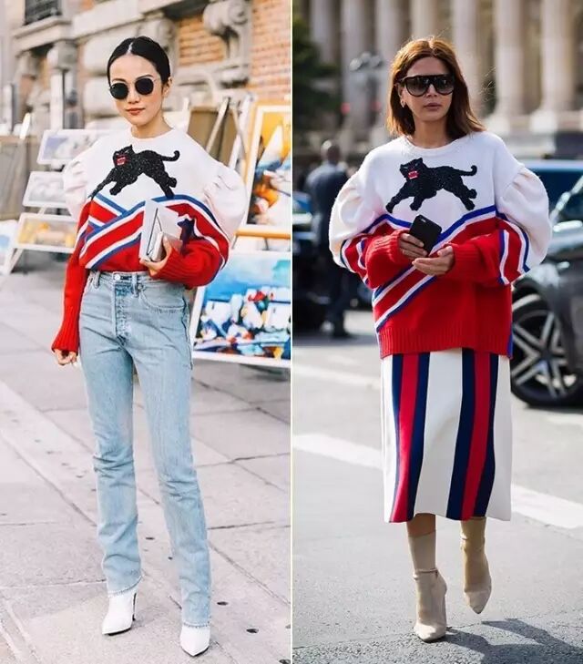 前两年一直很火的Oversize毛衣也还没有过时(戳这里看叫醒你的衣柜||毛衣这样穿 遮肉显瘦又时髦),还可以继续拿出来穿。▼
