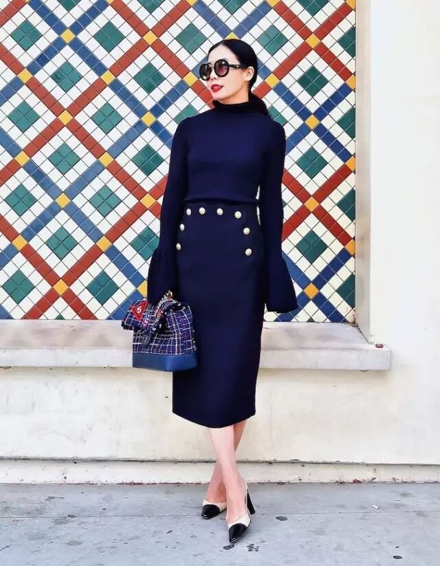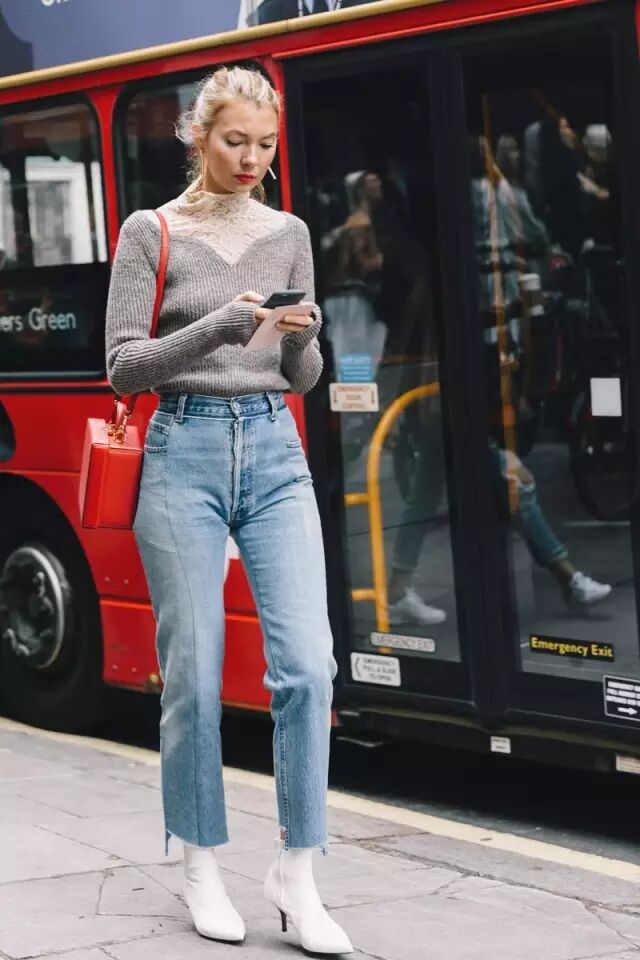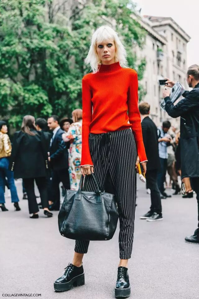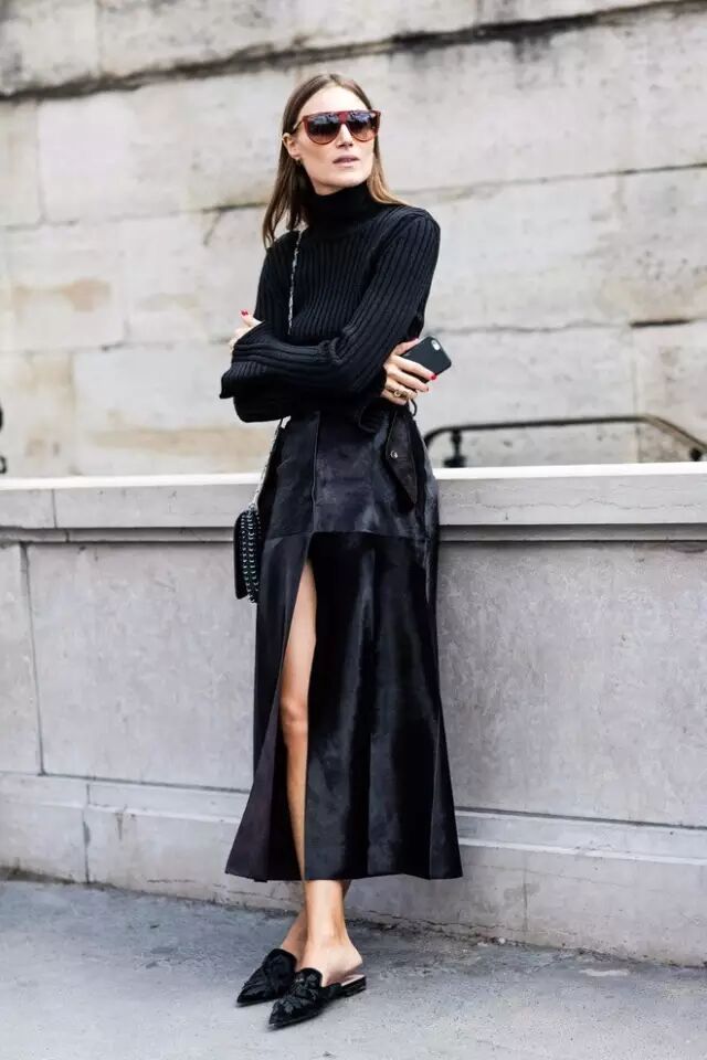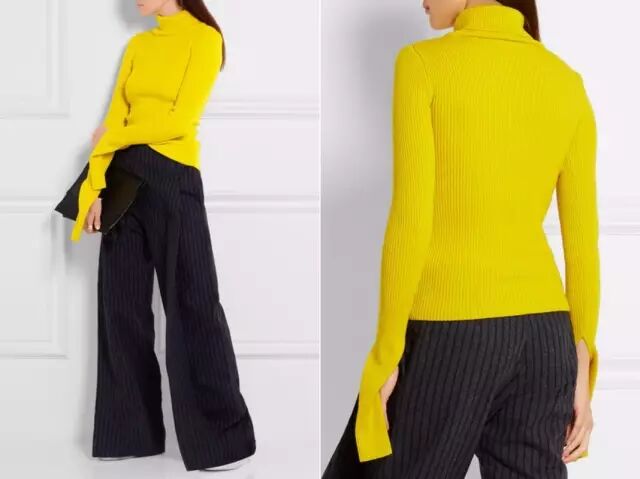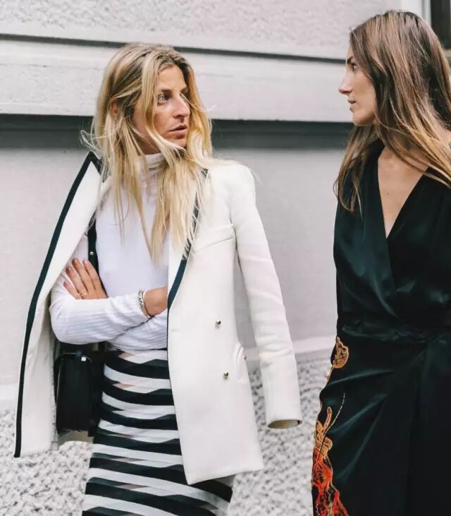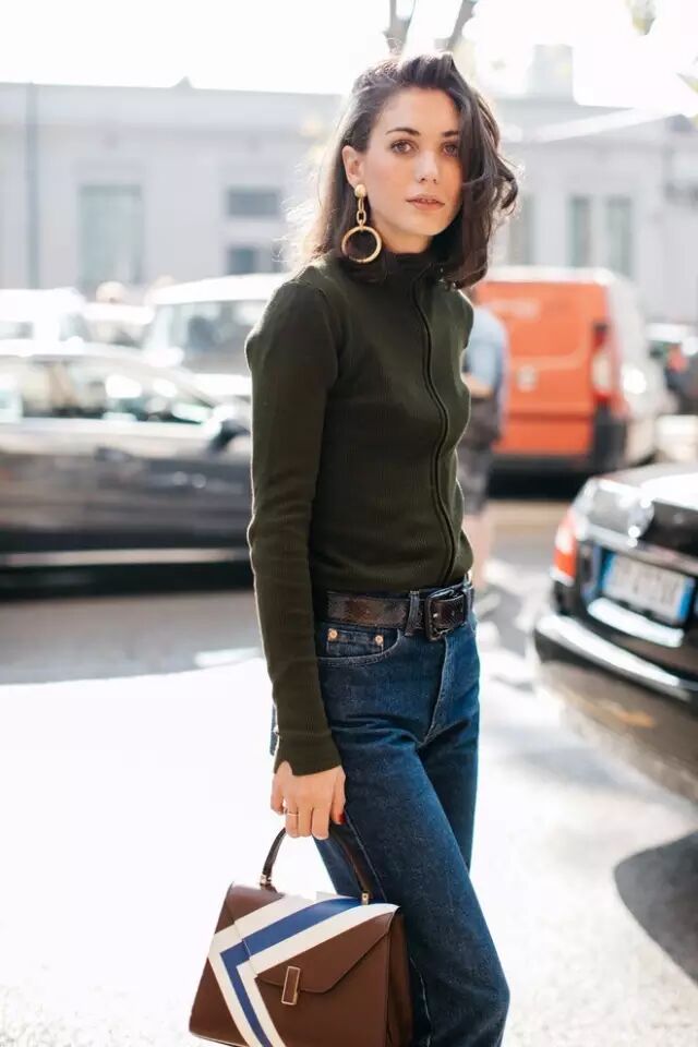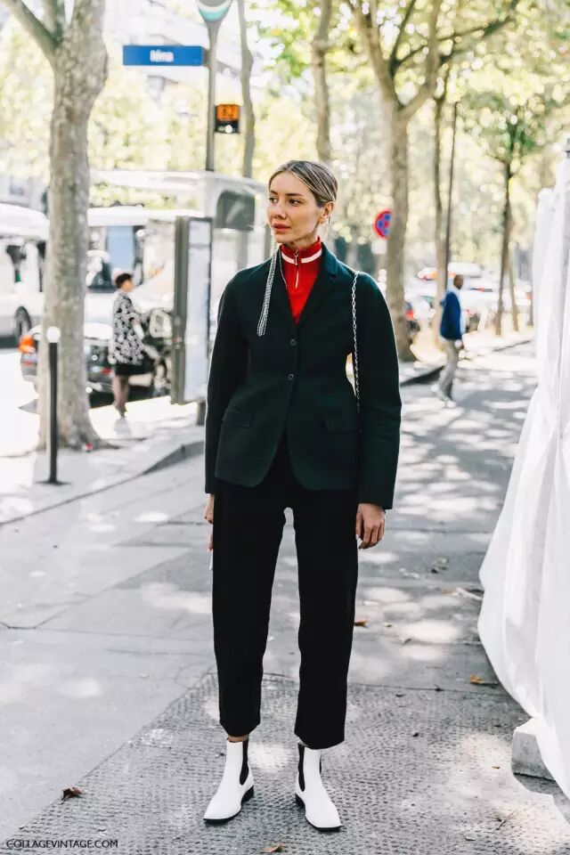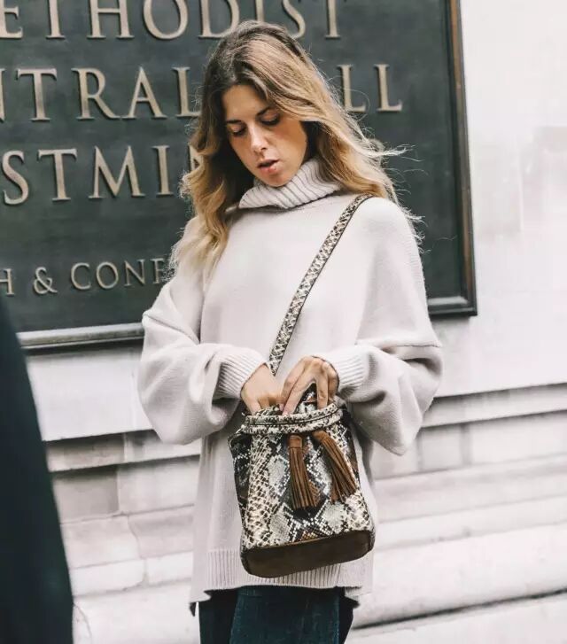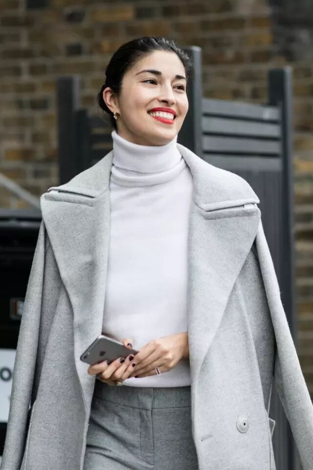 除了前面说的白色高领衫,其他款式和颜色的高领衫同样很流行。▼