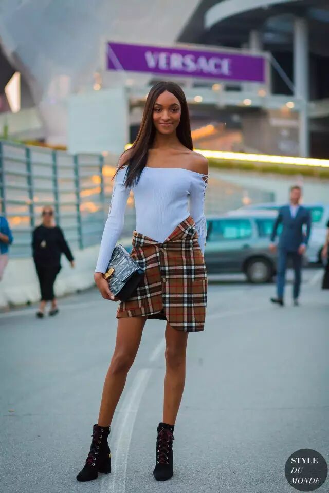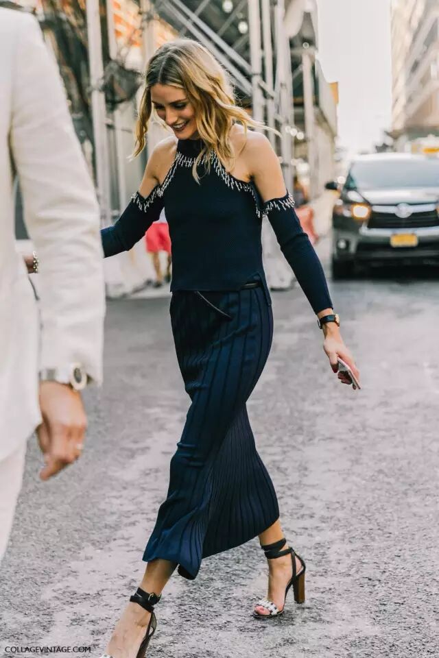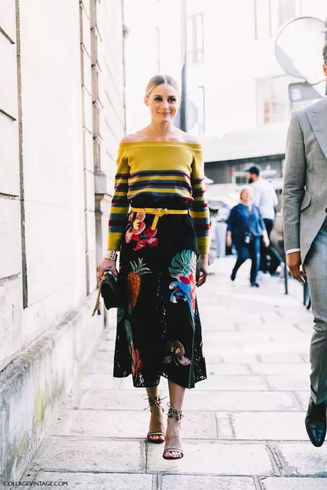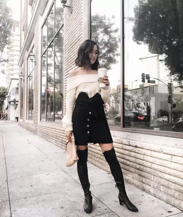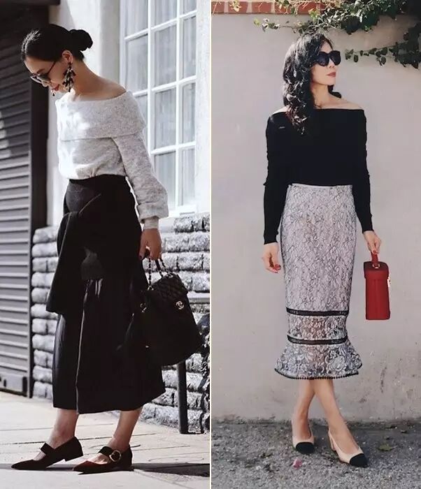 但时装精们总是要风度不要温度的~除了冷,说实话,真挺好看的。一字领的露肩针织衫看起来更优雅,搭半裙穿最好看。▼