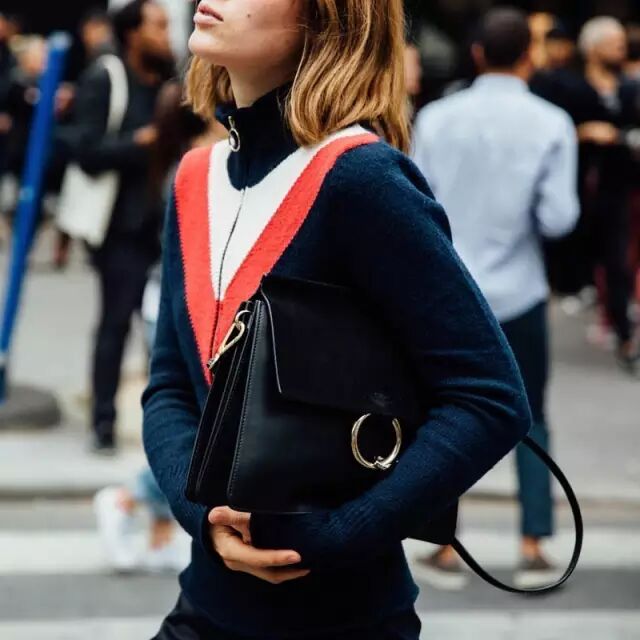 不过要说趋势,今年流行的高领针织衫又多了一点运动风的元素。不少品牌在针织衫上加入了拉链的元素,把高领衫穿出运动风~▼
