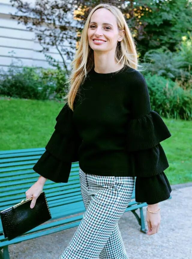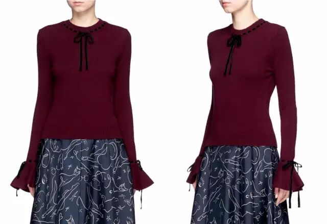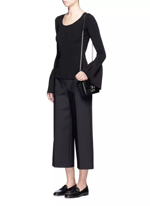 除了长袖,今年的针织衫在袖子上还做了一些文章。像这种多层喇叭袖。一个喇叭怎么够,给每个袖子再多加两个喇叭。恩,还挺特别的~▼