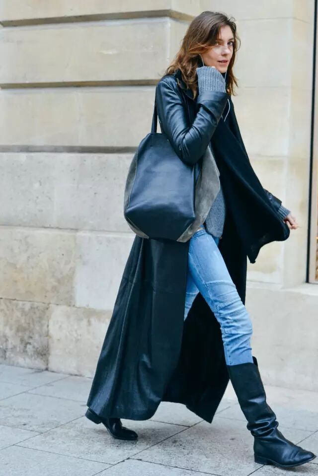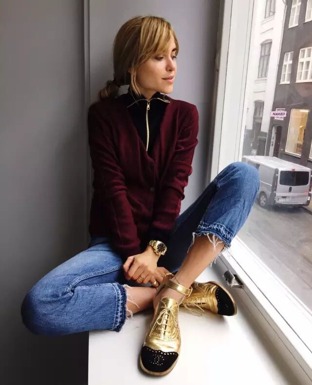 另外,如果领子特别高的话,还可以试试把拉链拉下来一点,做出翻领的效果,搭配起来又是另外一种效果,更成熟些。也有些高领衫直接做成了带拉链的翻领效果,博主Pernille Teisbaek就很喜欢穿。▼