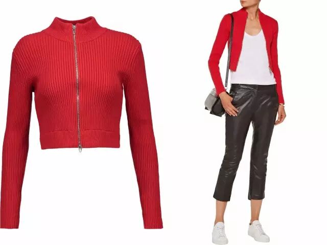 T By Alexander Wang Cropped ribbed cotton-blend sweater,参考价:2400元。▼