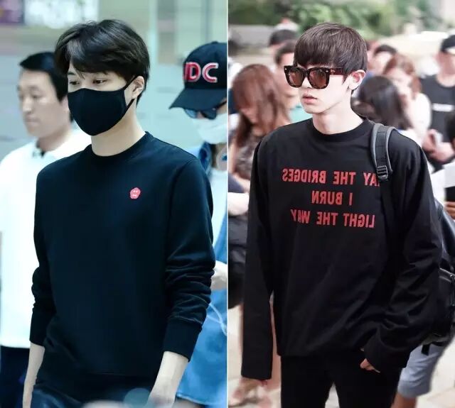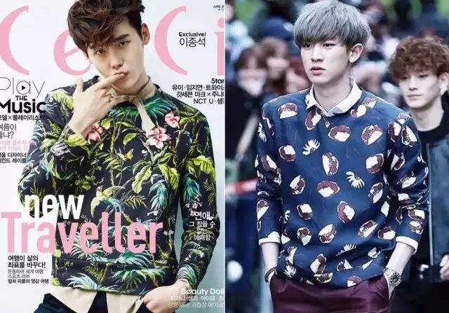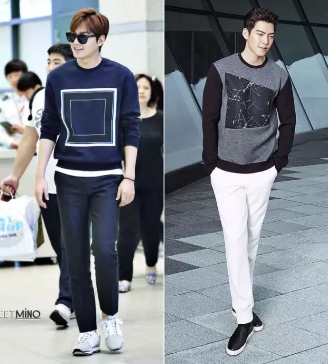 李敏镐和金宇彬穿的这种胸前有几何形状的也很特别,属于比较潮但又容易接受的款式。▼