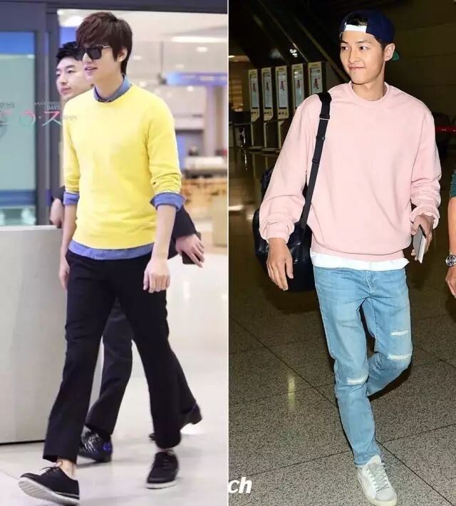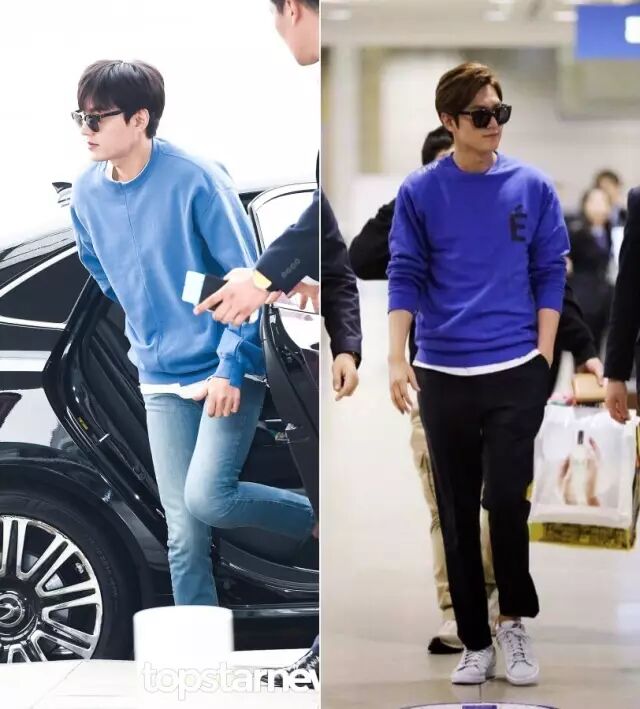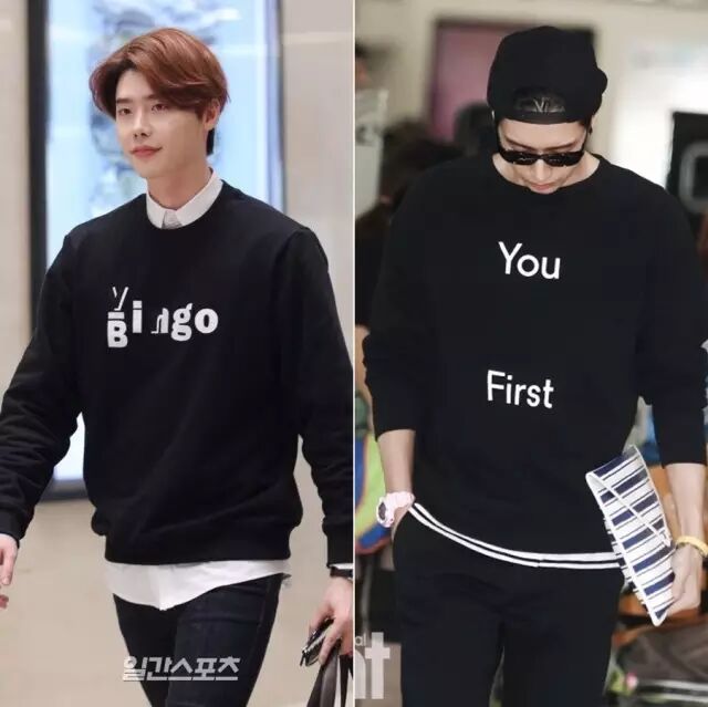 卫衣除了单穿,做内搭也不错。李敏镐这两套的搭配就很类似,也很容易模仿。▼