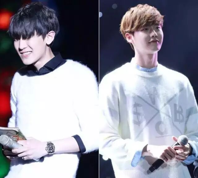 毛衣的材质上,最好不要选太毛茸茸的,很容易就娘了。比起左边,右边李钟硕这种更容易接受。▼