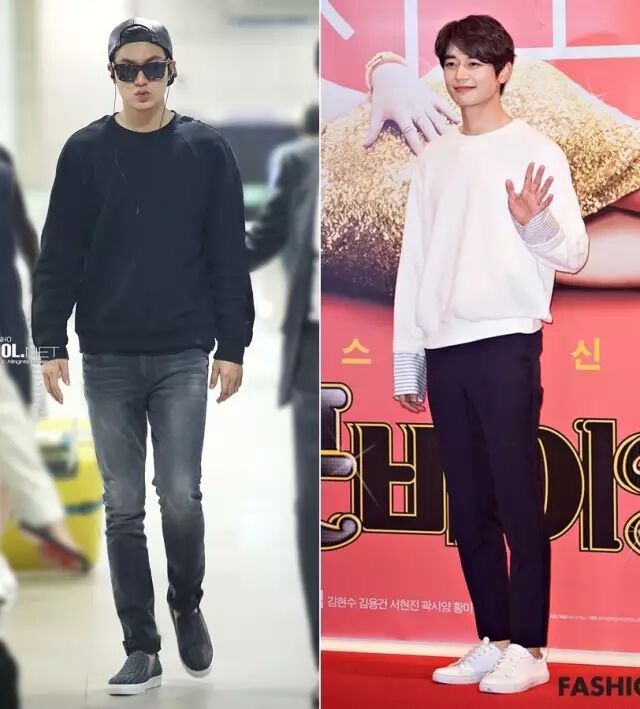 不过,下面这种高帮我倒是不太喜欢。身高187厘米的李敏镐和185厘米的朴灿烈穿着也是一般,比例不好的人更是灾难。▼