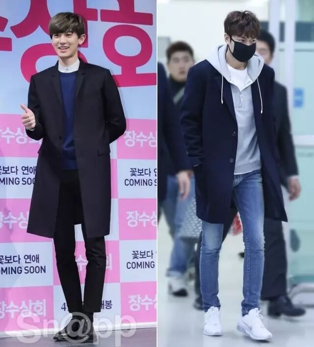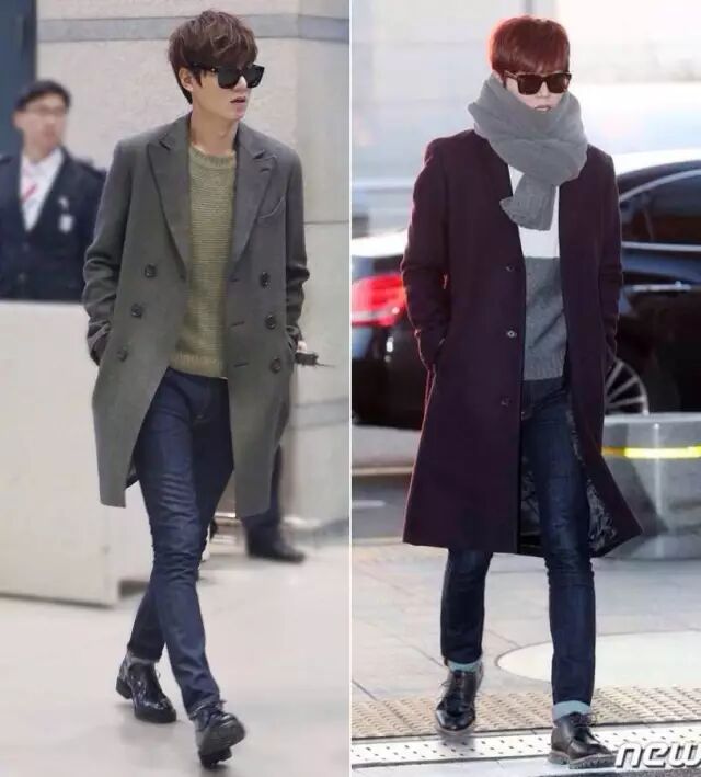 男生冬天的外套可买的还挺多的,比如机车皮衣、派克大衣、羽绒服等,韩国男明星们偏爱大衣,大多为中长款的H型大衣,因为这样的大衣百搭时髦,而且几乎不挑身材,很容易就穿得有型。