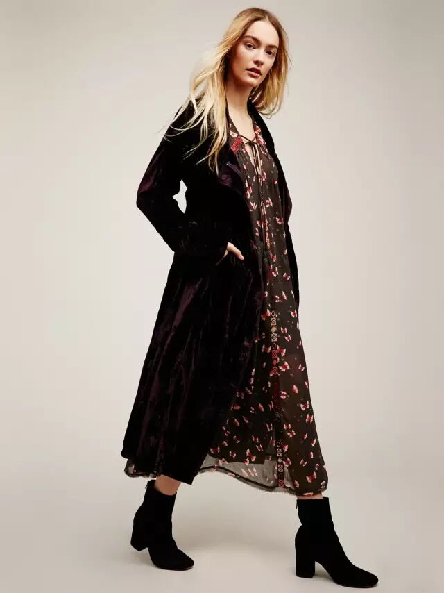 兼具保暖与时尚的天鹅绒长外套也是不错的选择,大地色更有复古感。▼