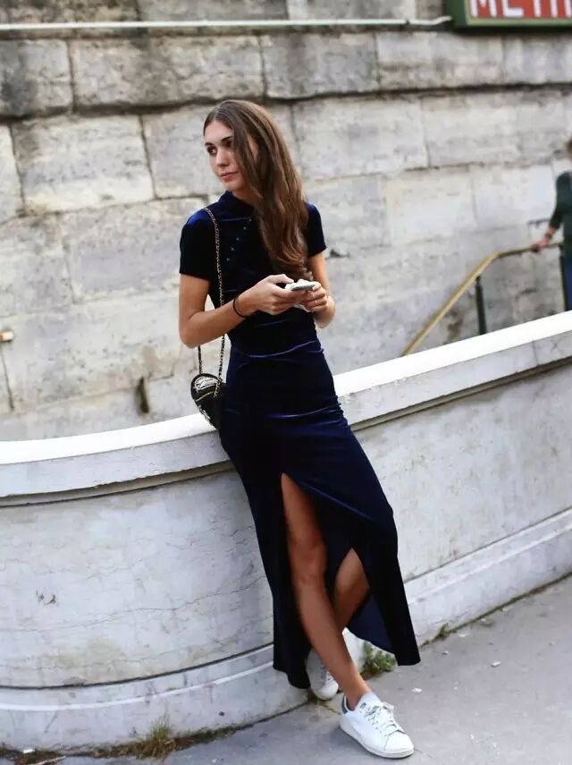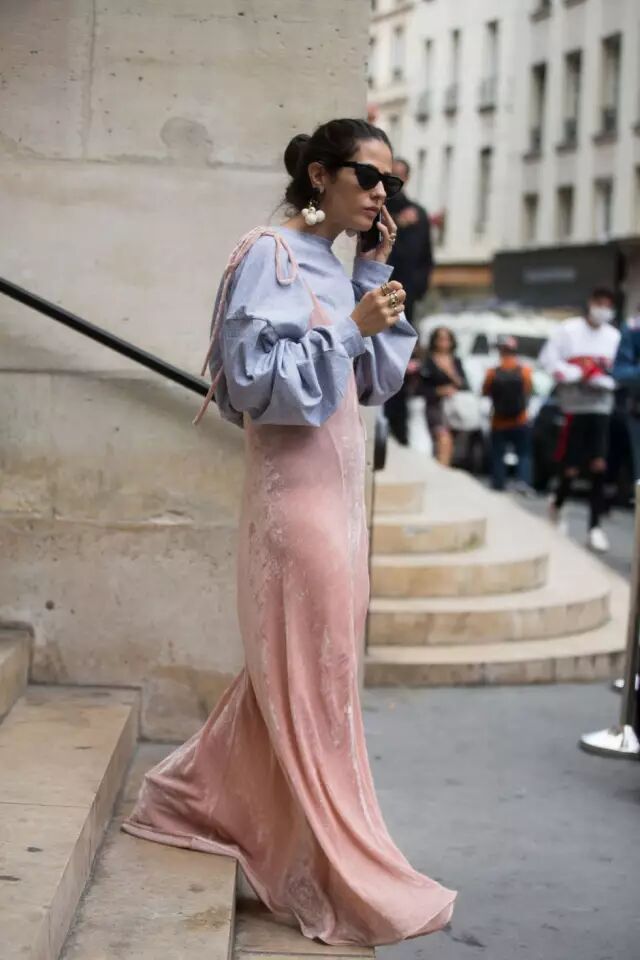 但天鹅绒连身裙不止华丽一种风格,选对款式和搭配,日常出街穿也完全不突兀。