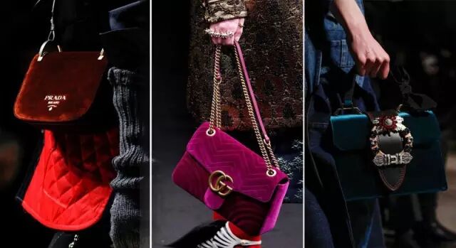 包包也是很好驾驭的天鹅绒单品。今年超多品牌都有出天鹅绒材质的包包,Prada、Gucci、Miu Miu。▼