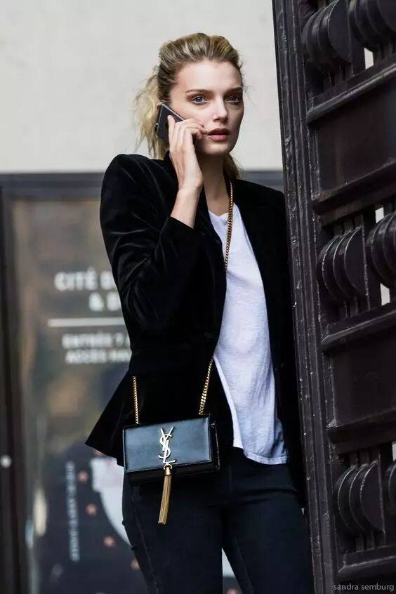 Saint Laurent Monogram 丝绒面料的这款也挺火的,可儿前段时间背过。▼
