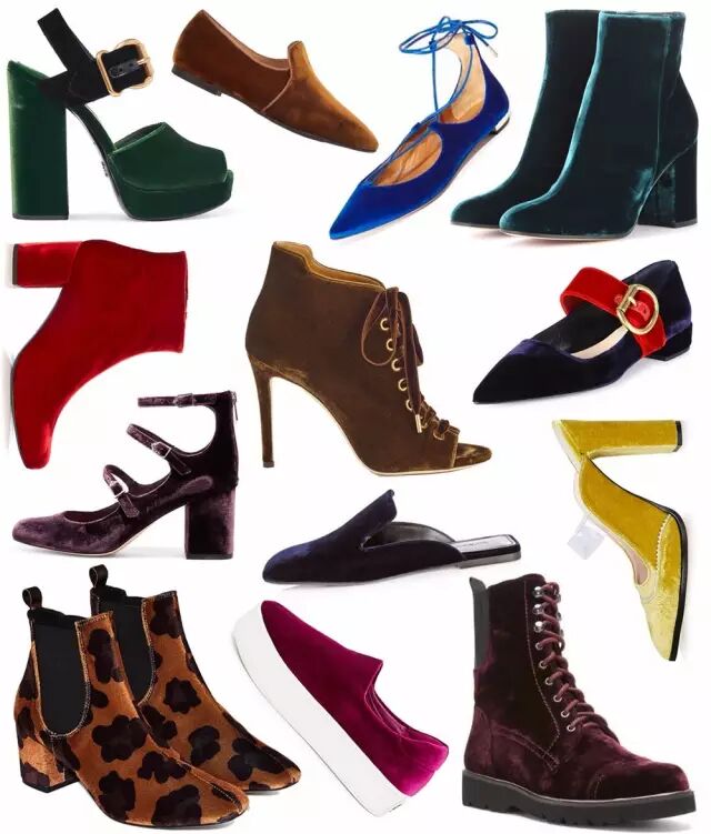 如果觉得自己Hold不住大面积的天鹅绒,不妨从面积更小的天鹅绒鞋开始尝试。我自己目前最想买的就是一双天鹅绒的鞋,随便搭搭就能时髦好看。▼