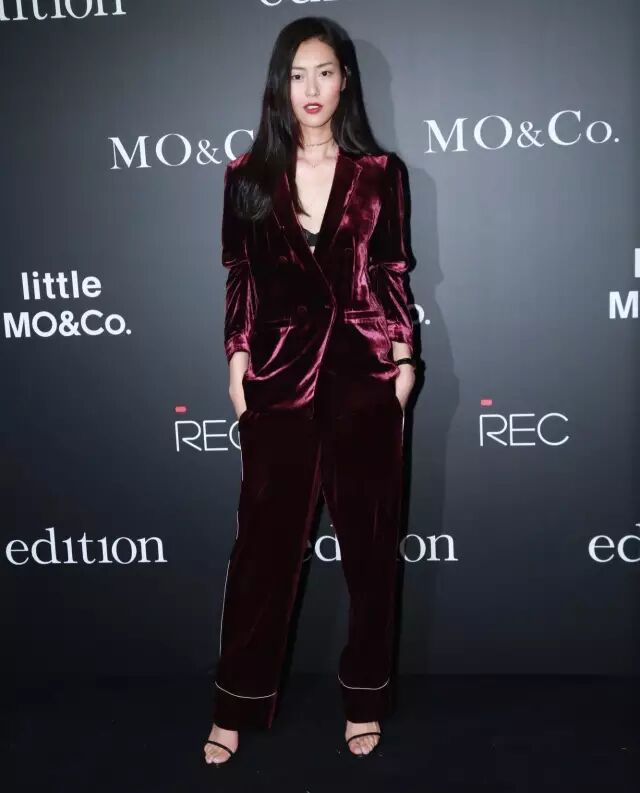 前阵子,大表姐刘雯穿了一身紫红色天鹅绒西装套装,帅气。▼