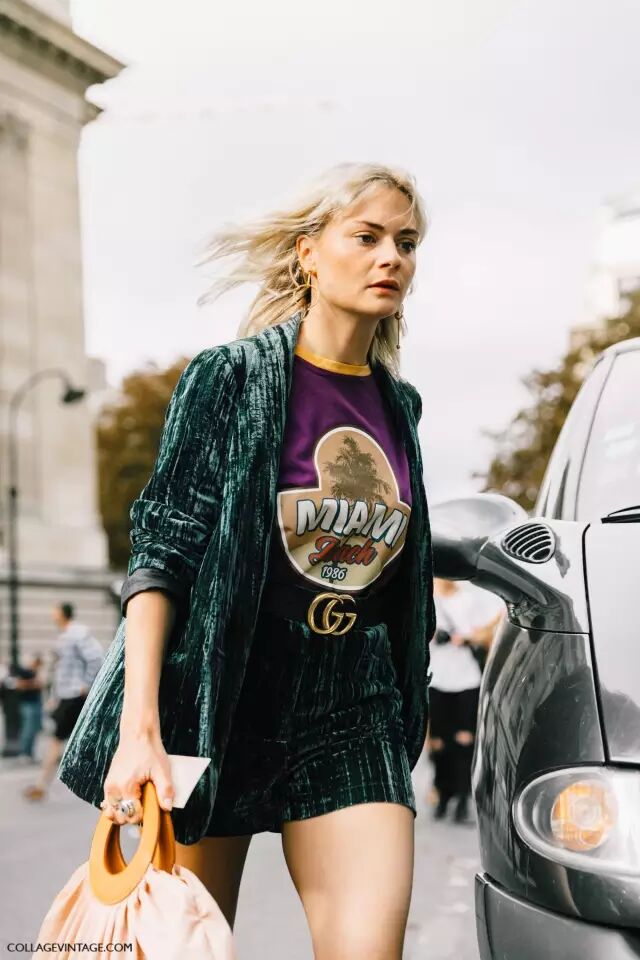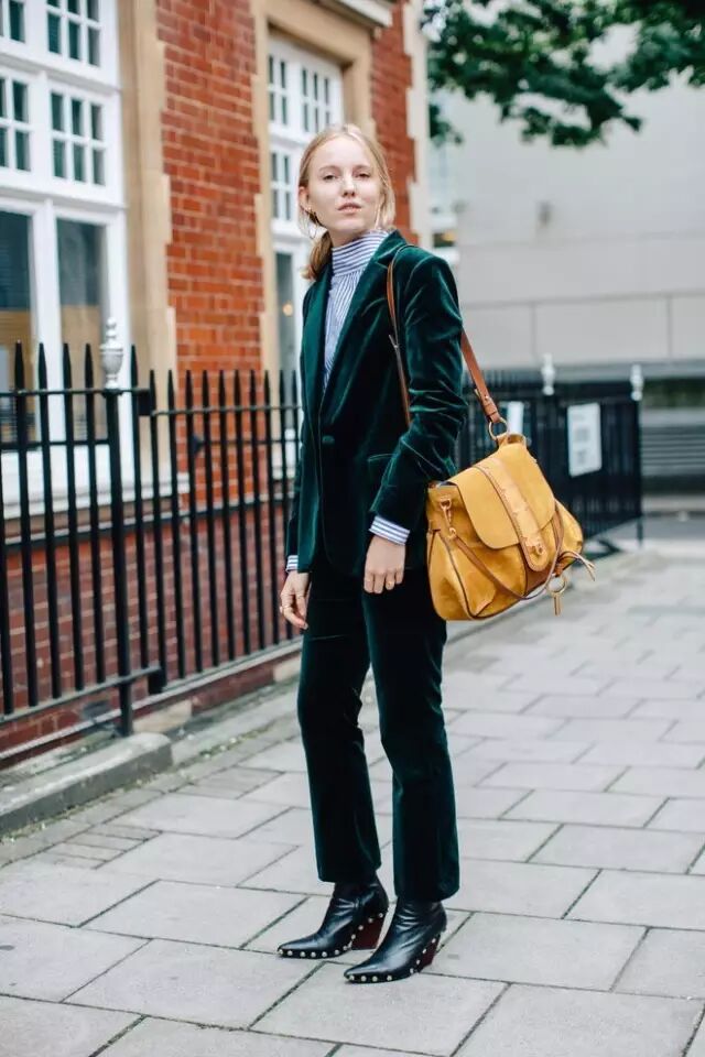 天鹅绒西装套装在街拍和红毯上都很常见。▼