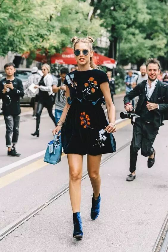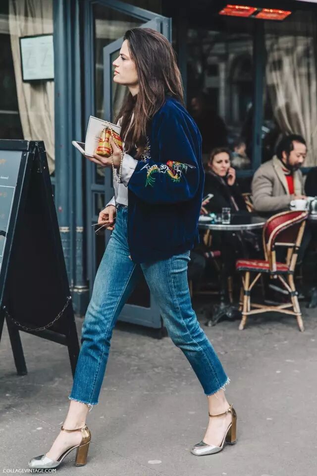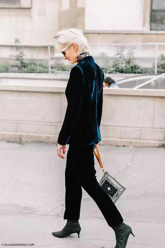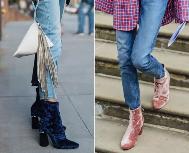 不过,今年我最想买的是天鹅绒短靴。它在今年的各种街拍里出镜率也很高,堪称短靴界的网红靴。我前几天在写切尔西靴(链接戳这里:找到一双完美的小黑靴,到底有多难?)的时候就推荐过它了,很有复古味道。尖头、粗跟的款式最经典。▼