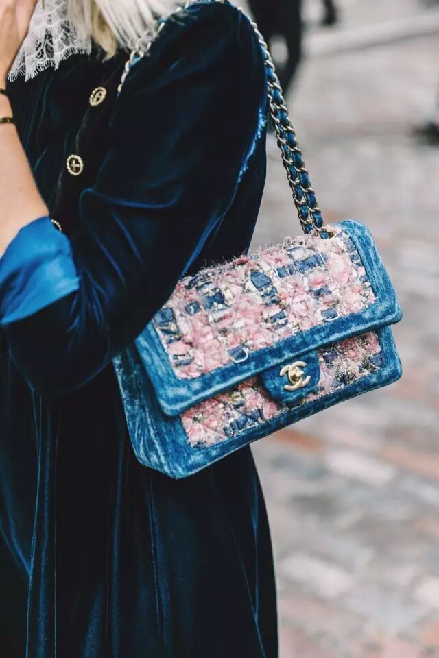 Chanel家出过的天鹅绒包包就更多了。这种相对温暖厚实的手感,和特别的光泽感,尤其适合秋冬季节。▼