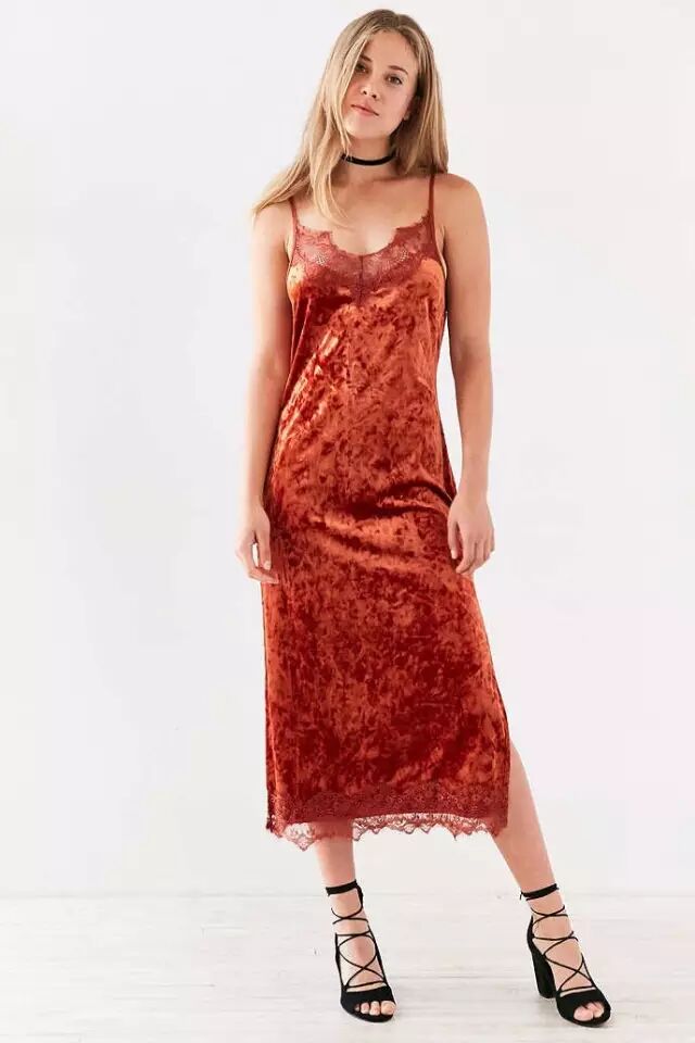 火了一整个夏天的Slip Dress,摇身一变成天鹅绒材质,性感中多了点优雅。▼