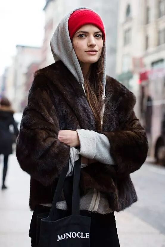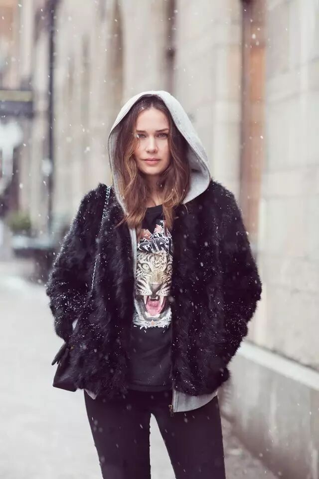 还有皮草外套,配上连帽卫衣,瞬间去除贵妇感,重回美少女行列。▼