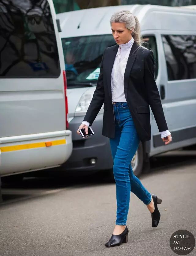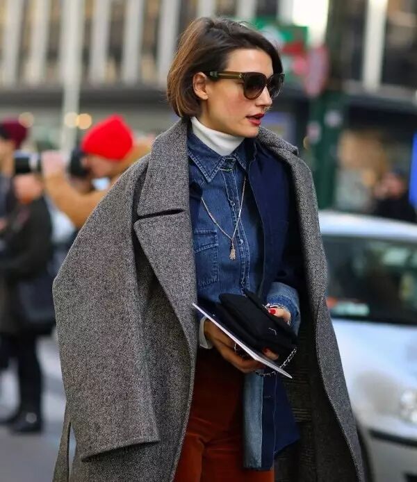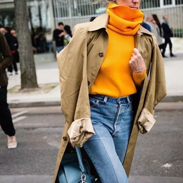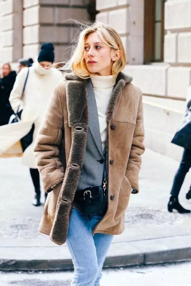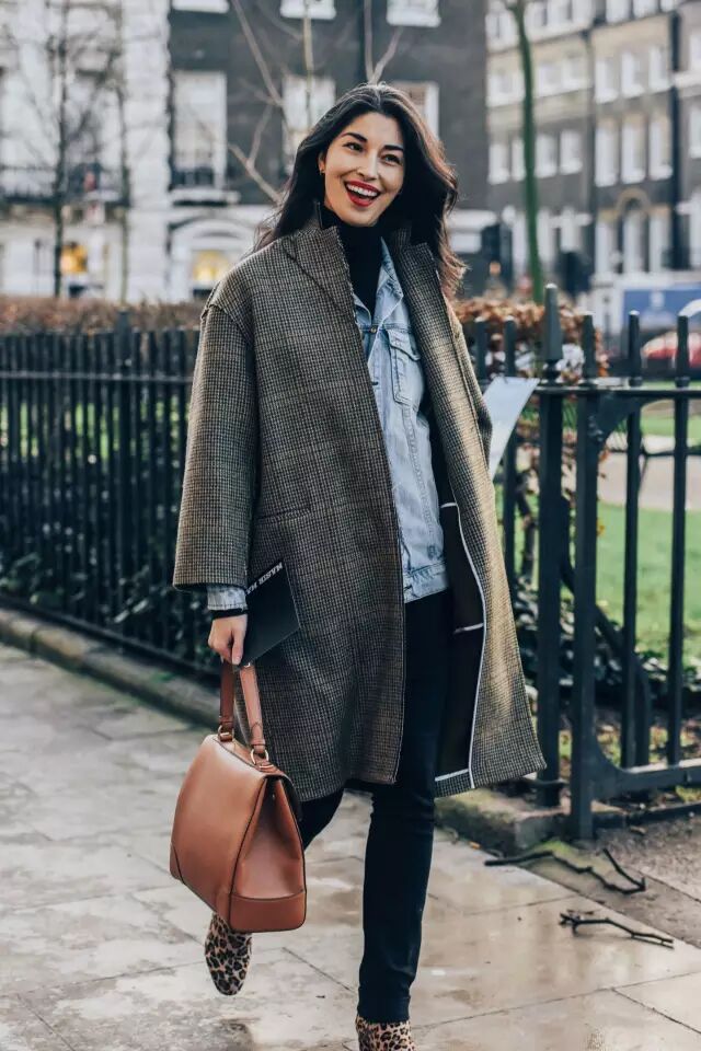 有了贴身高领衫做打底后,里面那件可以系上扣子,做到真·保暖,而且系上扣子后也不会显得肿肿的。时装精们最爱用它搭牛仔外套。▼