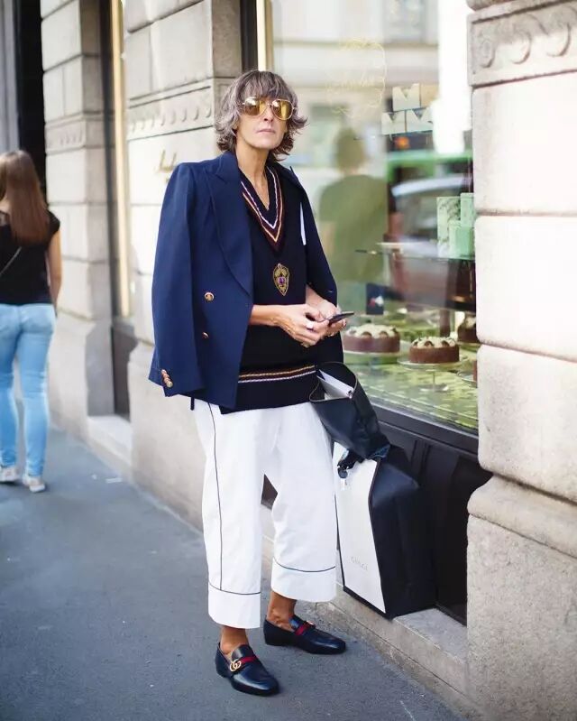 还是衬衫配圆领毛衣,时装精式的穿法一是:把普通的衬衫换成Oversize的,露出袖子、领子、衣服下摆。▼
