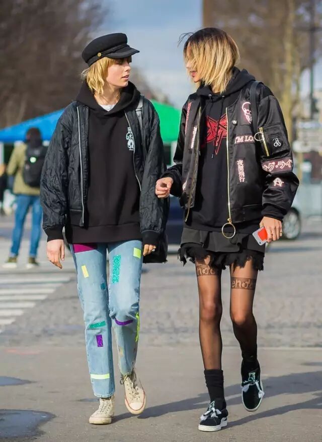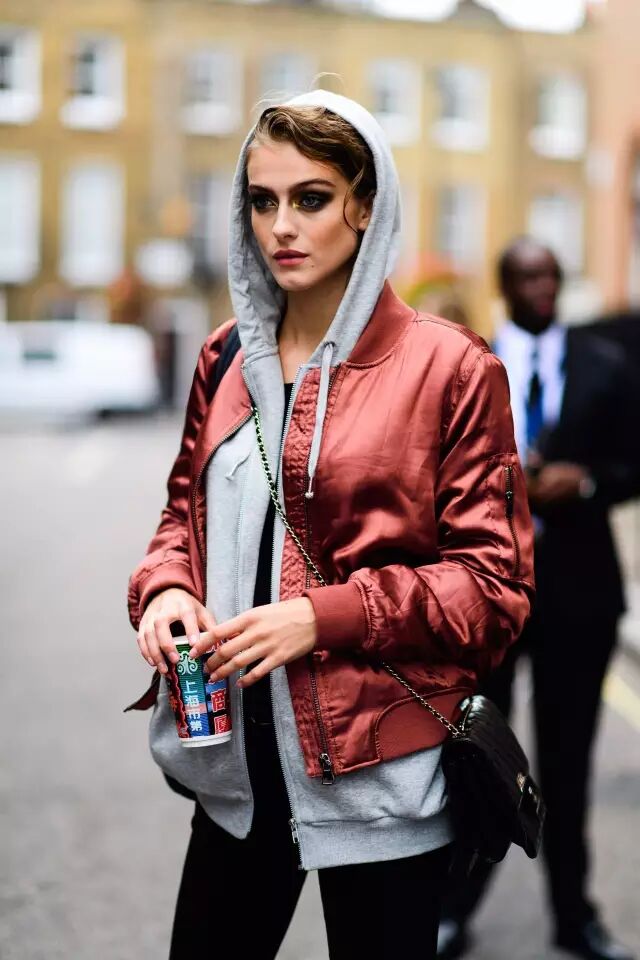今年时装精们最喜欢的组合应该是连帽衫和飞行员外套的组合,帅气又保暖。▼