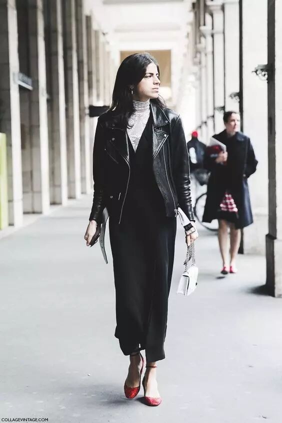今年秋天最常见的叠穿是吊带裙或者背心裙搭配高领打底衫。这个组合放在冬天也照样适用,加上一件外套就够了~▼