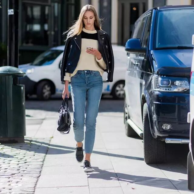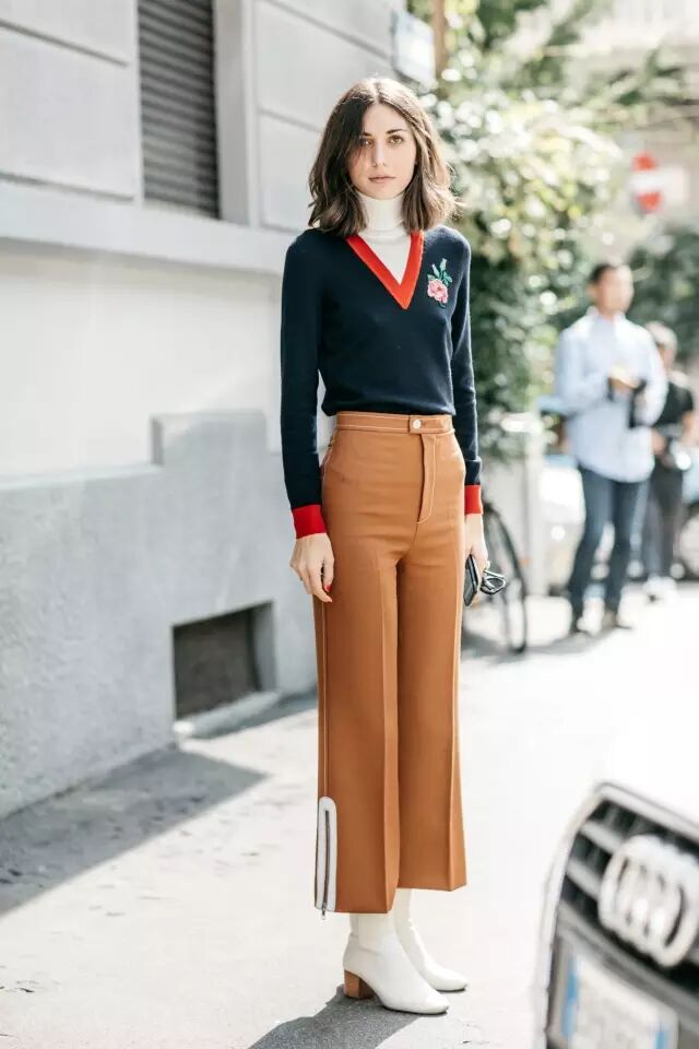 冬天必备的小圆领毛衣,和高领衫就是绝配,让光溜溜的脖子不再孤单。这种搭配街拍中很常见,也很容易模仿。▼