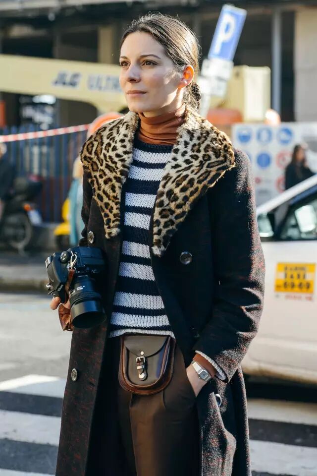 不妨大胆试试像钟小姐这样内搭一件彩条纹的毛衣,是不是更有新鲜感?▼