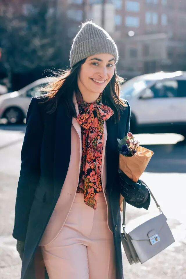 想更特别一点,还可以在外面再混搭一条小方巾~▼