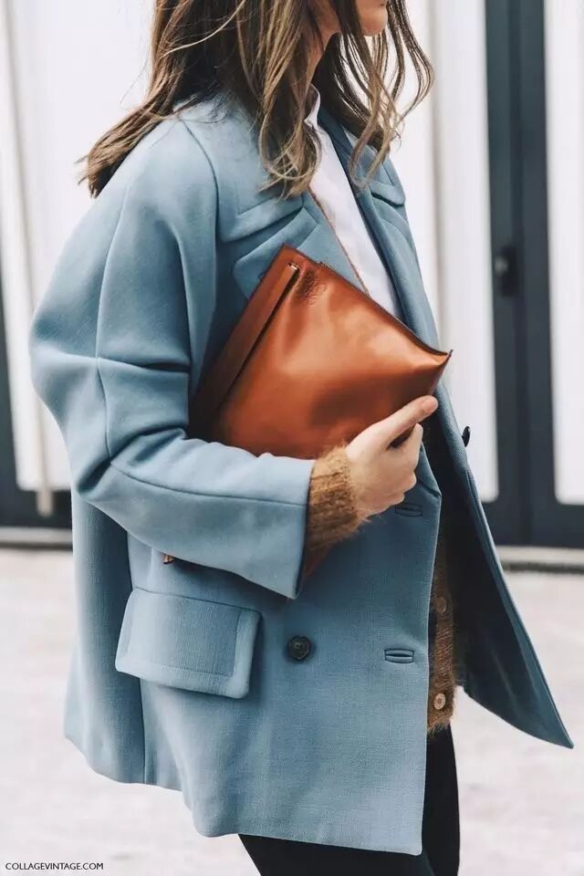 就算内搭都是黑白灰基本款,想要从人群中脱颖而出,一件雾霾蓝大衣就够了。▼