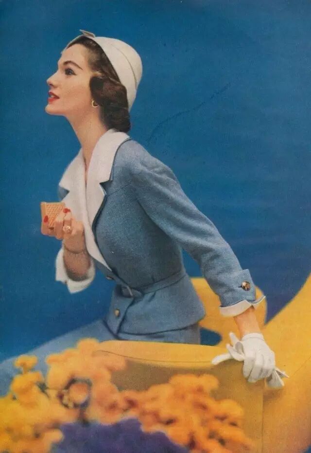 虽说雾霾蓝是流行色,但我觉得这个颜色一直都还蛮经典的,买了雾霾蓝的单品也不用担心会过时这个问题。很多vintage大片里,就常常会看到穿着雾霾蓝外套或裙子的复古女郎们。▼