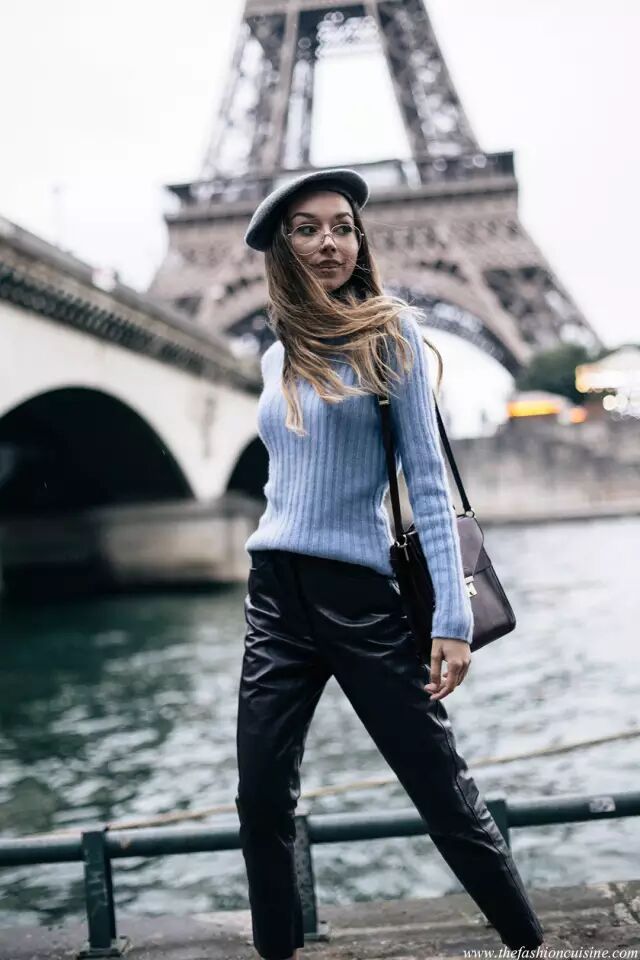 搭配起来也蛮简单,最常见的就是用毛衣搭配黑色紧身裤。▼