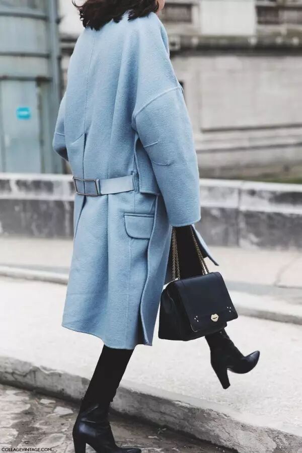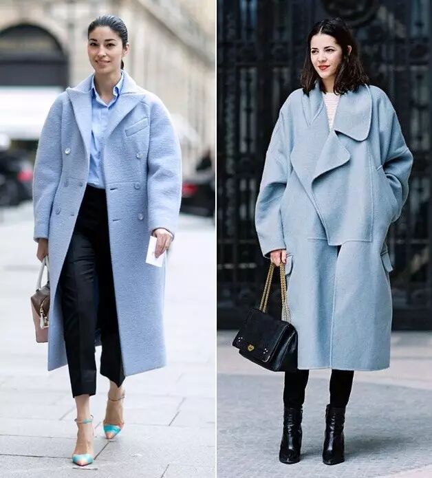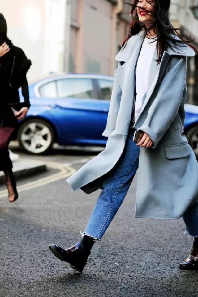 要说今年冬天最流行的,应该是雾霾蓝的大衣吧,比常见的黑灰藏蓝等基本色更容易让人眼前一亮。▼